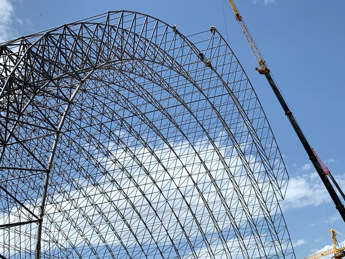 (2)网架加工前应对现场尺寸进行复测,确认无误后方可进行加工、安装;网架制作、运输、安装应遵守《空间网格结构技术规程》JGJ7-2010、《钢网架长乐螺栓球节点》JG/T 10-2009、《钢网架长乐螺栓球节点用高强度螺栓》 GB/T 16939-2016、《长乐钢结构长乐工程长乐施工规范》 GB50755-2012、《长乐钢结构长乐工程施工质量验收标准》 GB50205-2020。